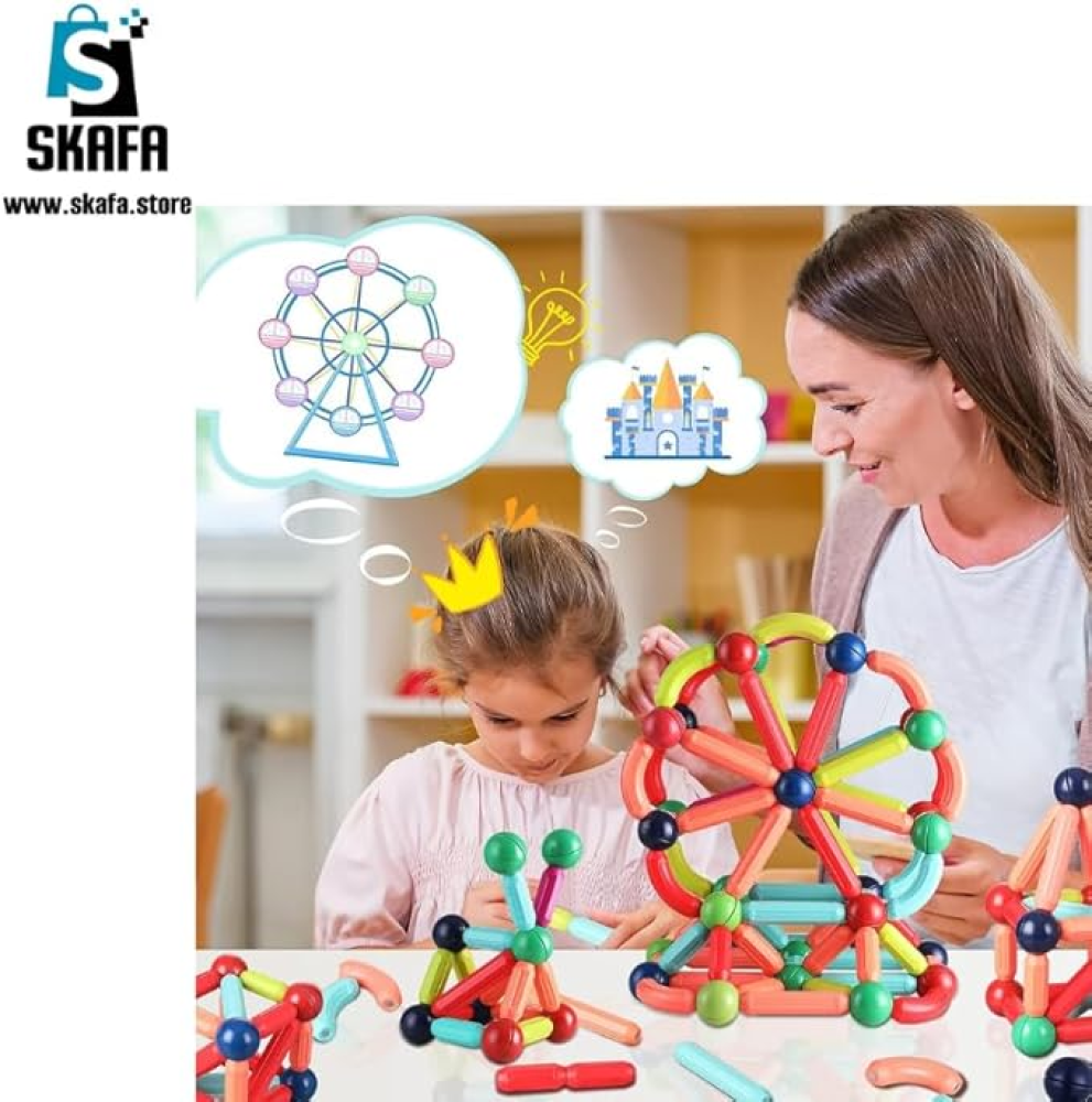 - تضم قطع مغناطيسية عالية الجودة تسهل البناء والتشكيل.